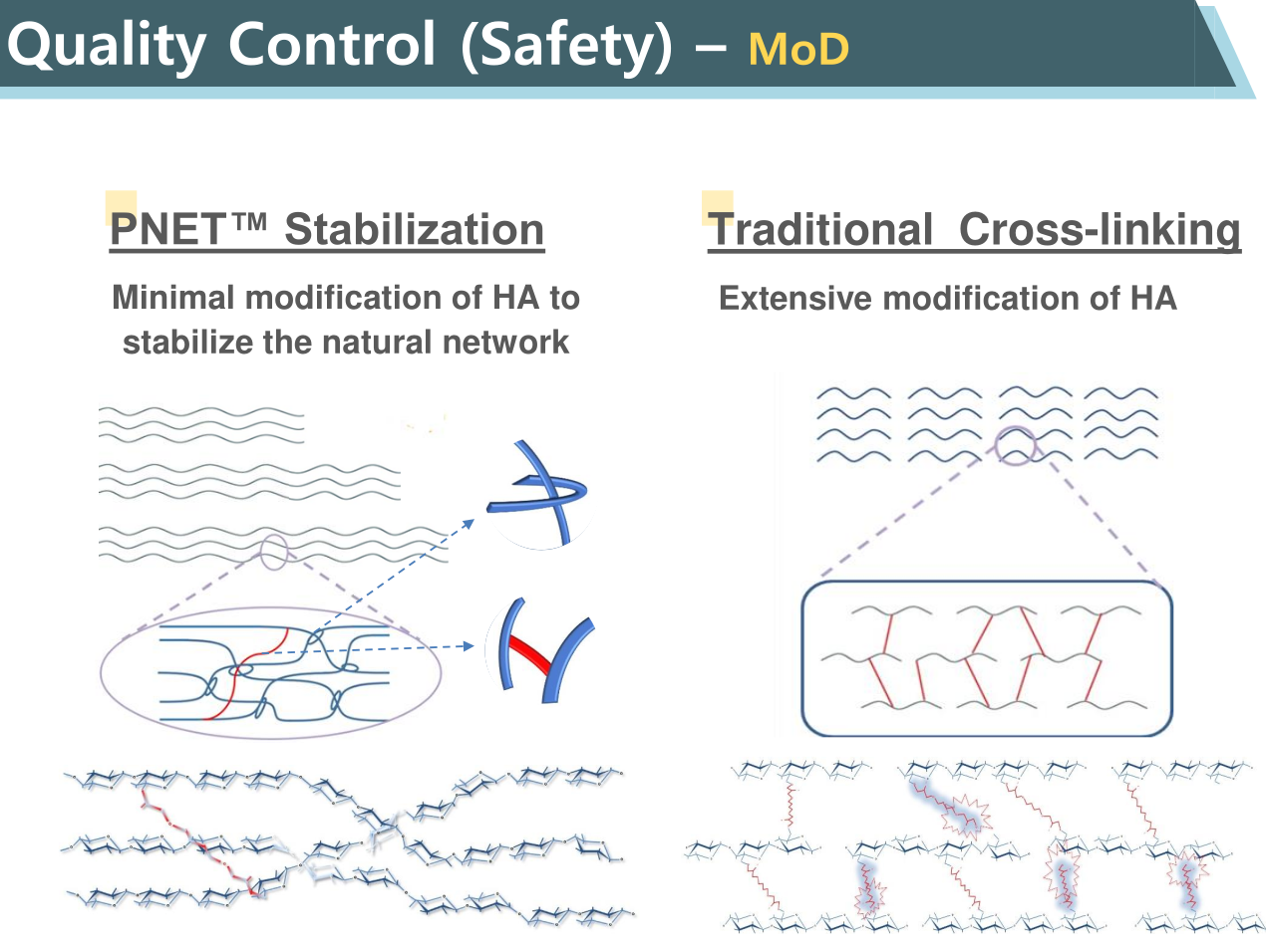 - * PNET (Preserved Natural Entanglement Technology): Unlike traditional fillers that rely heavily on chemical cross-linking, PNET preserves the natural entanglement of HA chains. It introduces a limited number of synthetic cross-links to stabilize the network. This “minimal modification” approach results in a filler that is biocompatible and highly similar to natural HA.